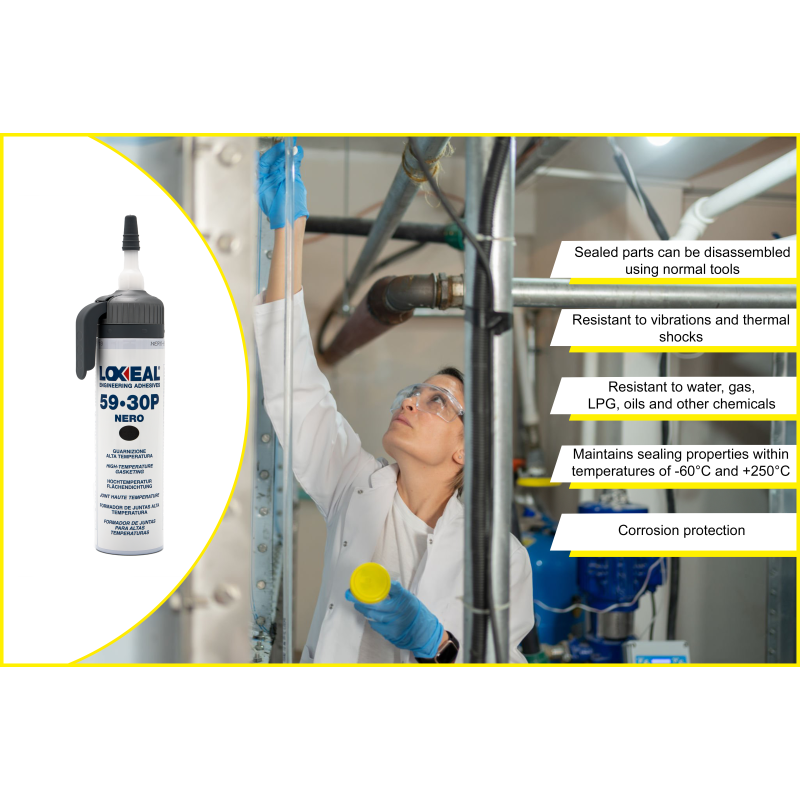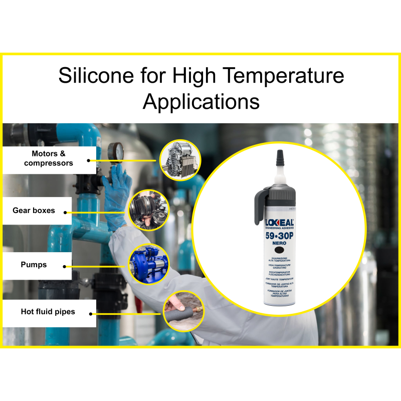 Loxeal 59-30 P - Sūkņu, pārnesumkārbu, sadales vārpstu, bloku un motora atloku, plakanu virsmu un atloku savienojumu blīvēšanai. Augstas temperatūras videi